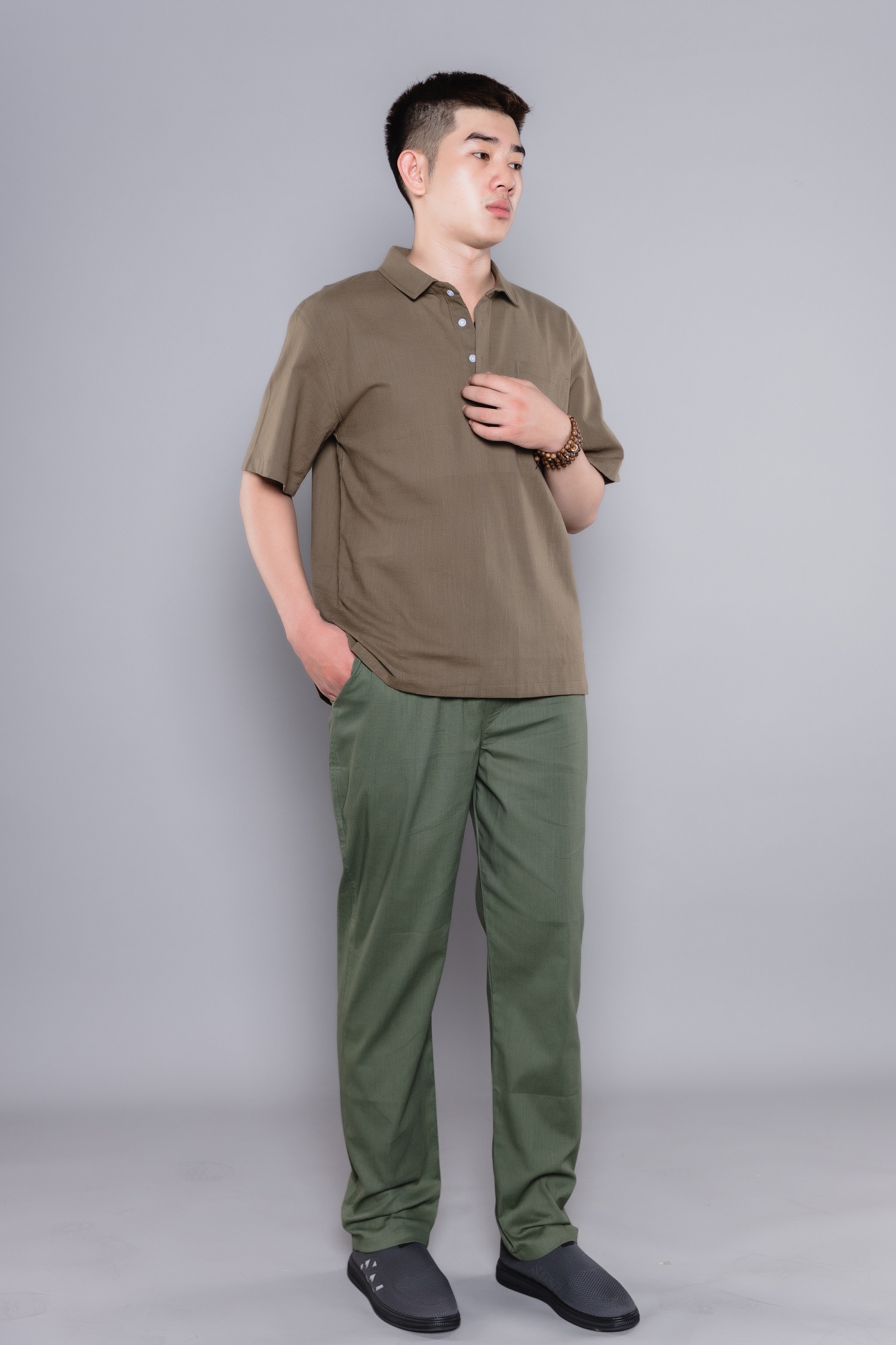 BỘ QUẦN ÁO ĐŨI MÀU GHI RÊU