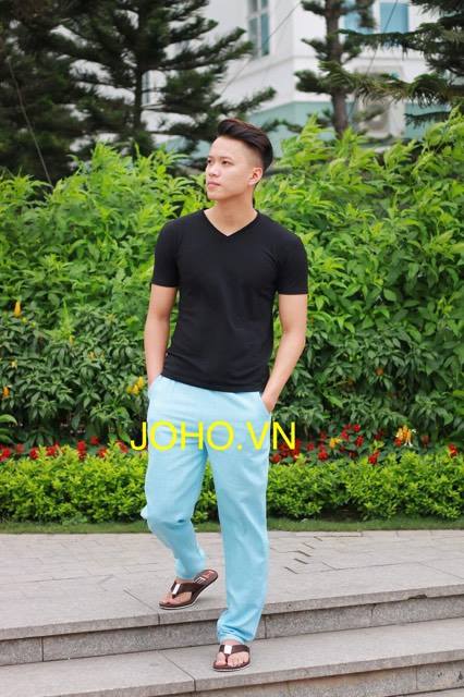 Quần đũi dài màu xanh nhạt